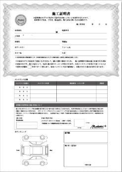 Modestaのボディコーティングを施工したお客様には施工した証として施工証明書が発行されます。万一の事故などで破損した時に保険修理の対象となりますので、大切に保管して下さい。